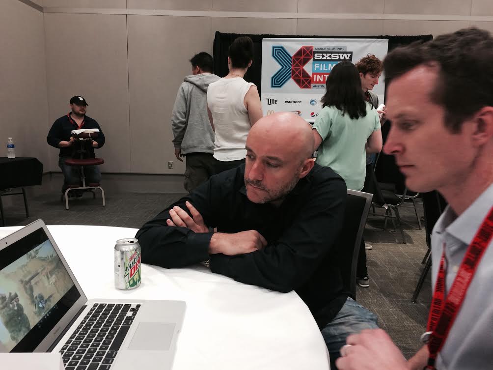 August Cole and Call of Duty producer Dave Anthony prep before SXSW panel on Ghost Fleet
